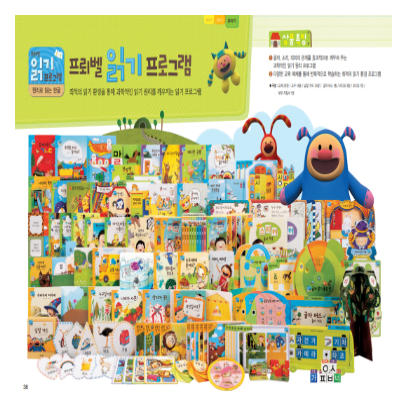 구성 교재29권/교구14종/낱말카드54장/글자버스1종/비디오9장/오디오1 장/부모지침서1권
